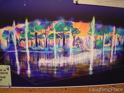 Searchlights and other light towers will rise from boxes bordering Paradise Bay. Special animation sequences were created using paper animation by paper artist Megan Brain, who created many characters for the show. The music was recorded at Abbey Road Studios in London, England with over one hundred musicians. Australian Choreographer Joshua Horner created a unique interpretation of the music for the Disney Creative Entertainment team thus serving as another source of inspiration for the movement of the water fountain sequences. (Check out the videos below from the Disney Parks Blog that go behind the scenes to see how the recorded the Night on Bald Mountain, how a professional dancer interpreted the music and helped the team develop the fountain movements, and how the developers thought to use the lasers and lights of the show.)